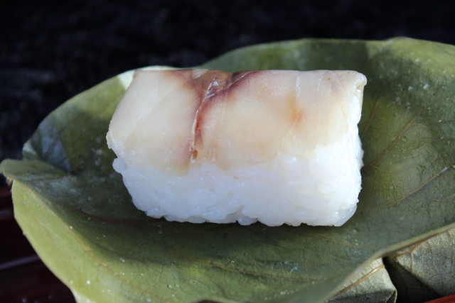 Kakinoha Zushi / NaraKakinoha zushi consists of rice topped with mackerel or salmon and wrapped in a persimmon leaf, the aroma of the persimmon leaf gives the sushi a mellow flavour. Persimmon leaf has many benefits and was invented as a medication by ancient Japanese. |
