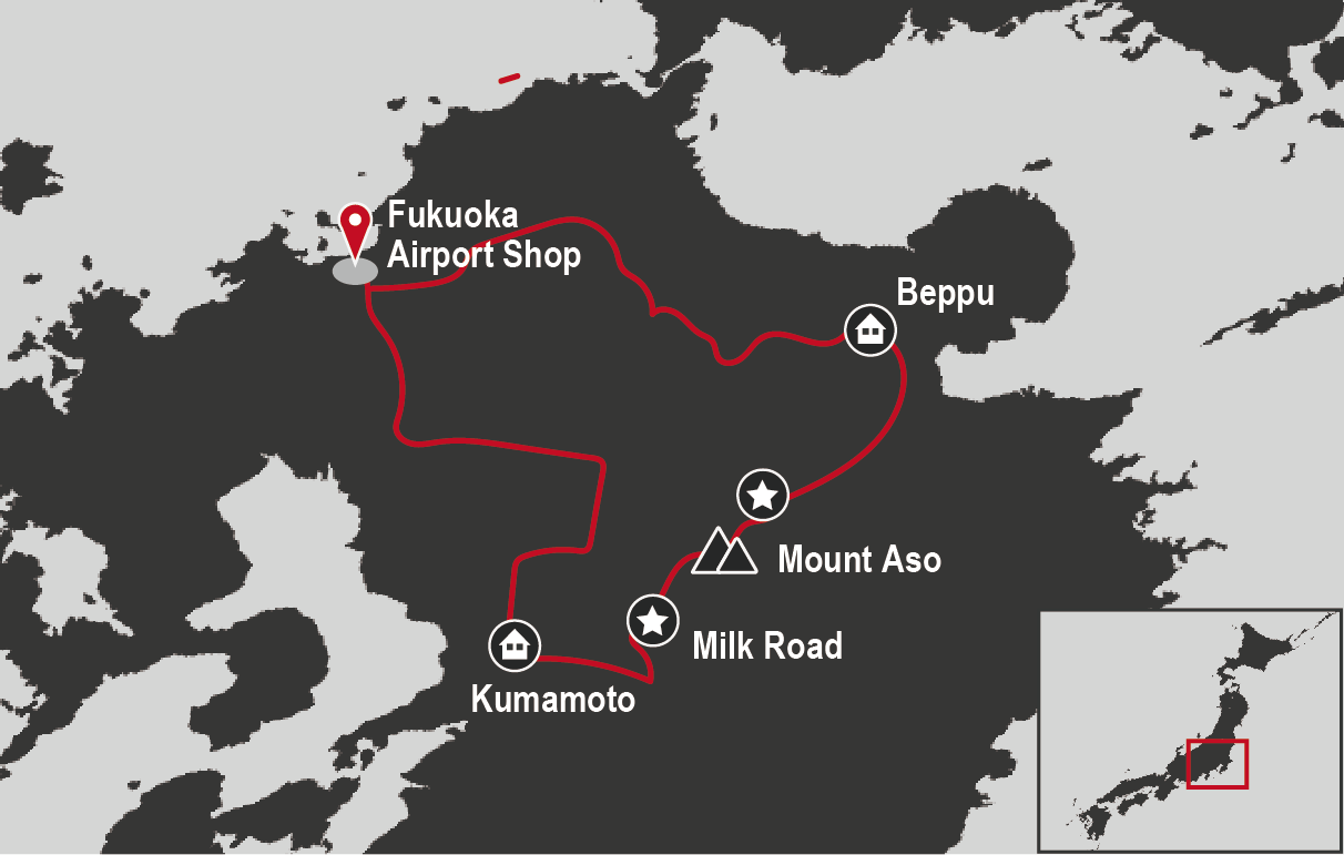 Today, your final day, you will ride from Beppu back to Fukuoka. Departing from Beppu, riders have the option to make a stop at the Iwashita Collection museum in Yufuin. With more than 200 vehicles from all motorcycle history, this is a must see for any biker. You will then proceed to ride through the mountains around Mount Hiko, before arriving to return your bike and depart the tour at the Fukuoka Airport Shop. See you on your next ride!